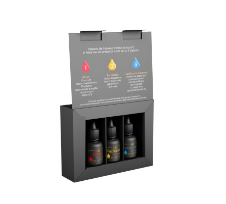 O Meu Primeiro Anal Kit 3×1 Intt é composto pelo conjunto de três produtos facilitadores ideal para prática de anal para quem não tem experiência, mas vontade de realizar essa fantasia erótica. O Meu Primeiro Anal é um kit “pague um leve três” fabricado pela empresa Intt e idealizado em parceria com Marcus Castropil, o Rei do Botão e especialista em anal. Cada frasco possui 8 ml concentrados, que serão suficientes para uma primeira experiência completa com repeteco. A embalagem oferece um maior controle da saída para melhor aplicação.